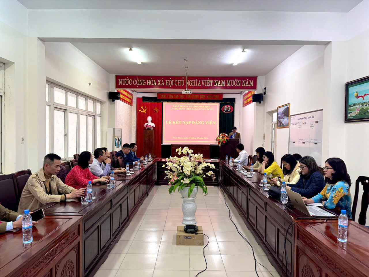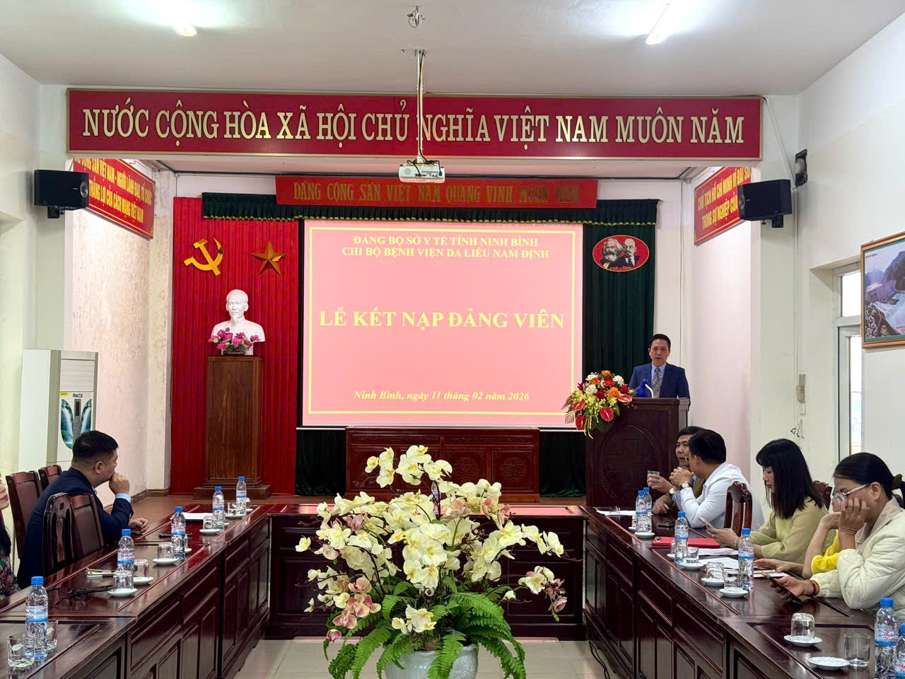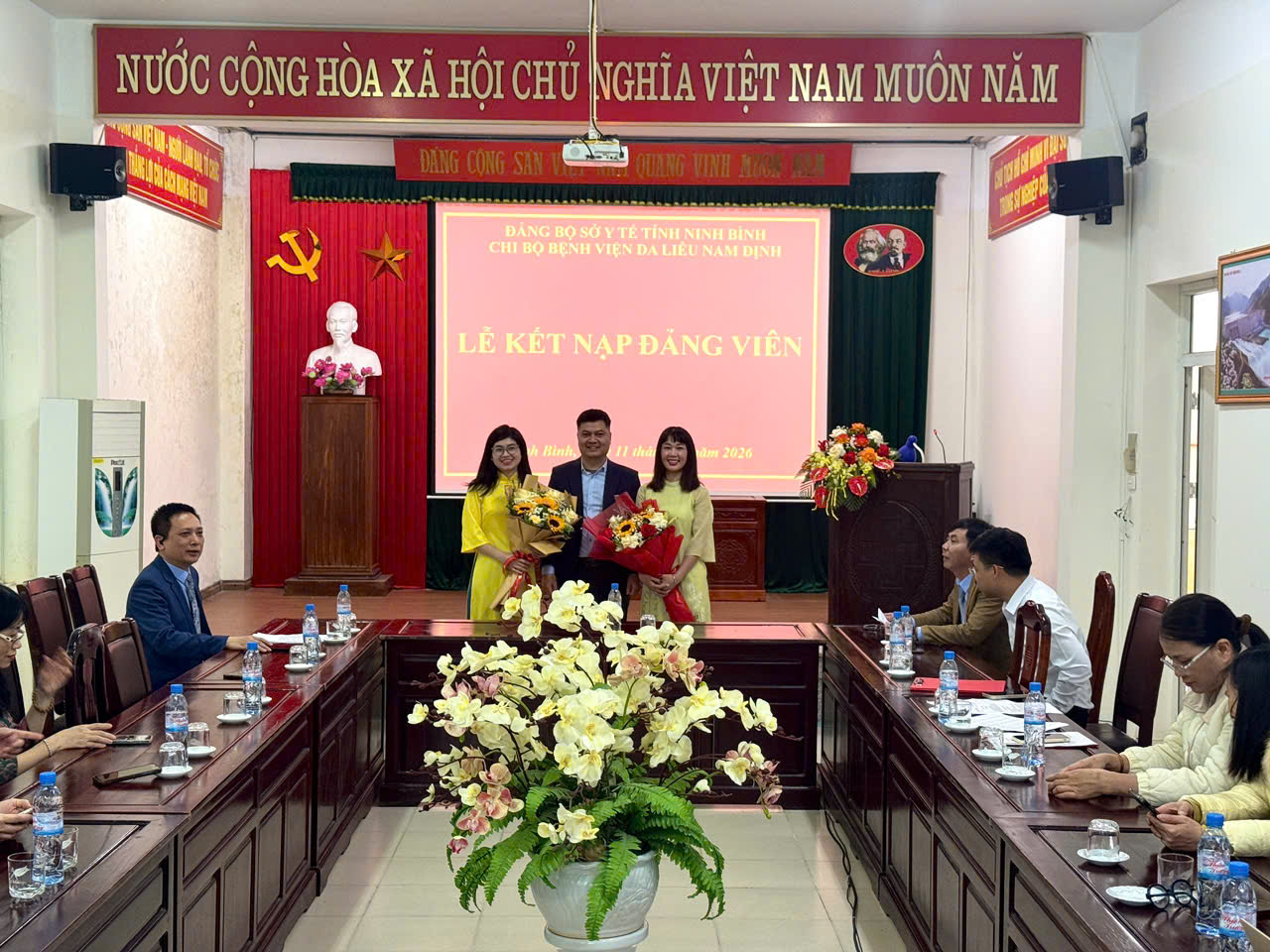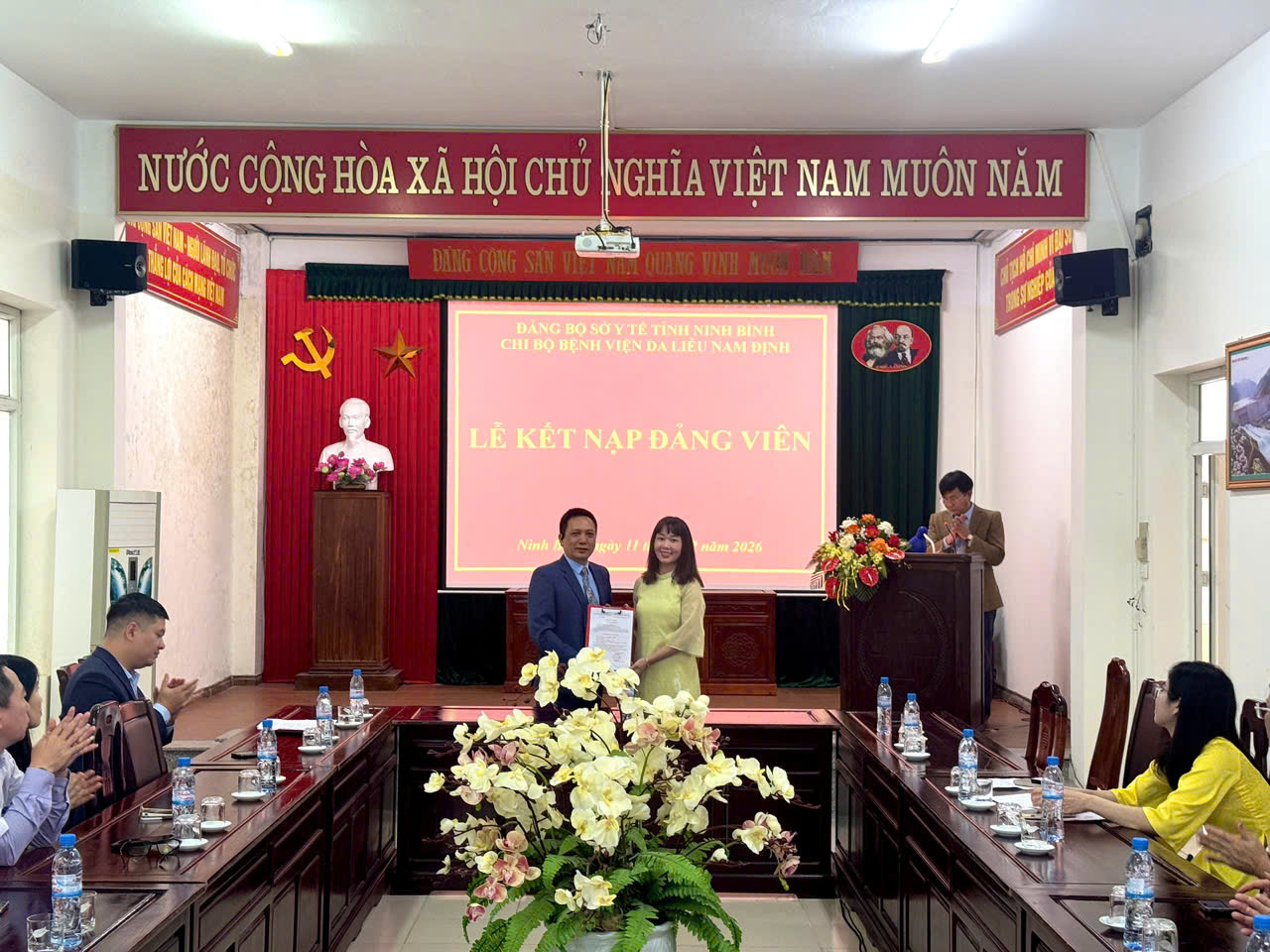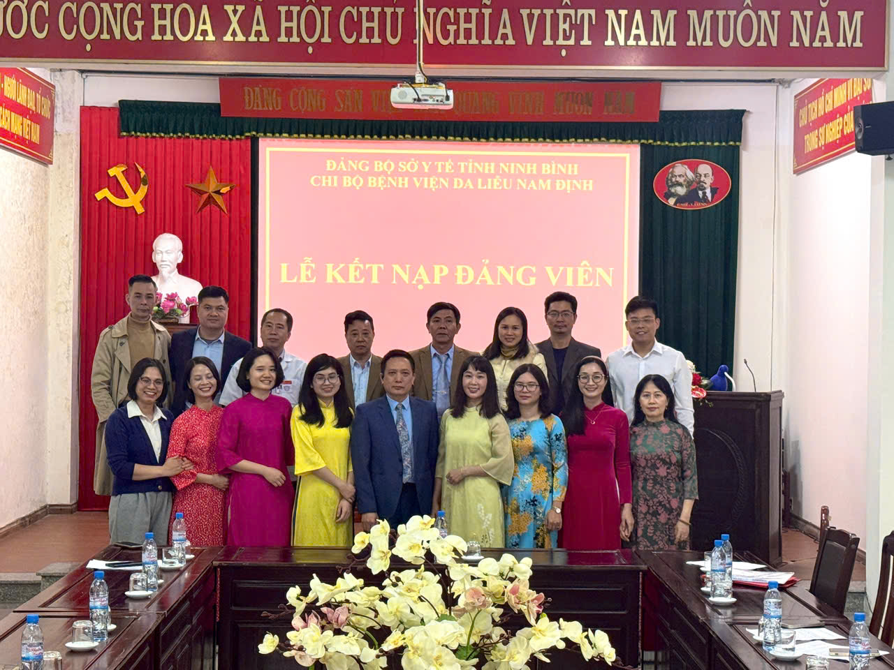 Hôm nay, ngày 11/02/2026 tại Hội trường Bệnh viện Da Liễu Nam Định, Chi bộ Bệnh viện Da Liễu Nam Định long trọng tổ chức Lễ kết nạp Đảng viên cho 02 đồng chí Trương Thị Huế và Hoàng Thị Thơ vào Đảng theo đúng Quy định.